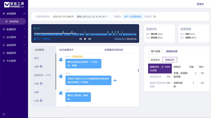 借助先进AI系统实现销售顾问人员与客户沟通过程的精细化管理与能力优化,提高门店销售管理和客户洞察水平。