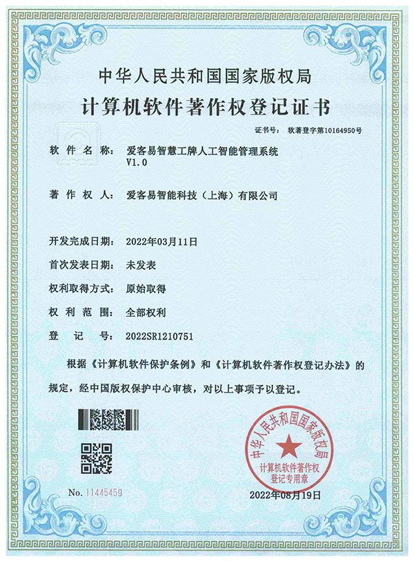 爱客易智能科技(上海)有限公司成立于2021年,是专注人工智能解决方案的服务商和技术开发商。旗下的爱客易智能工牌管理系统是智能办公领域的细分增值应用。该项目获得超过10个以上的软件著作权。广泛应用于银行、保险、社保、旅游接待、客户服务、外派服务等等应用场景。